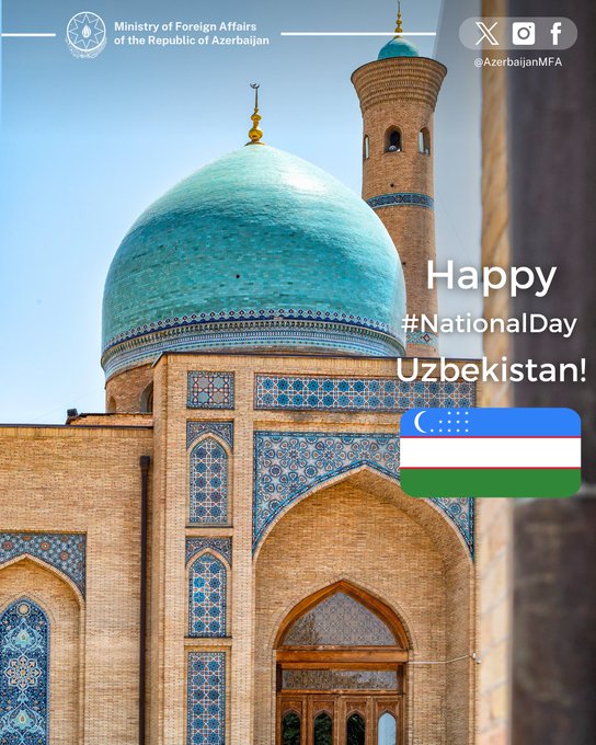 Azərbaycan Xarici İşlər Nazirliyi (XİN) Özbəkistanı Milli Günü münasibəti ilə təbrik edib.